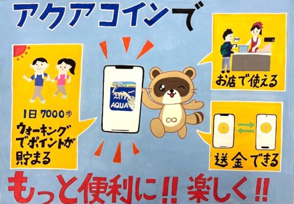 木更津市内限定!スマートフォンのアプリ上で利用できる電子地域通貨「アクアコイン」は、地域を大切に思う気持ちを形にした電子マネーです。